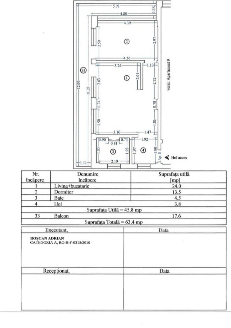 Общая площадь квартиры: 63.4 м2